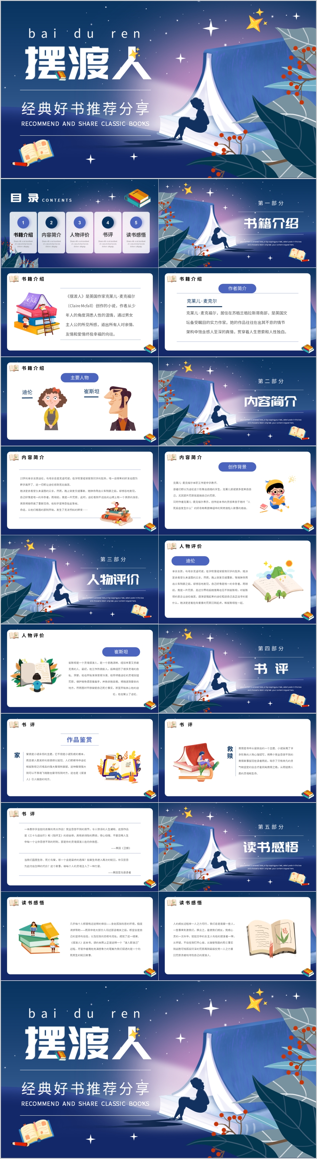 卡通读书分享会阅读分享好书推推荐摆渡人ppt模板