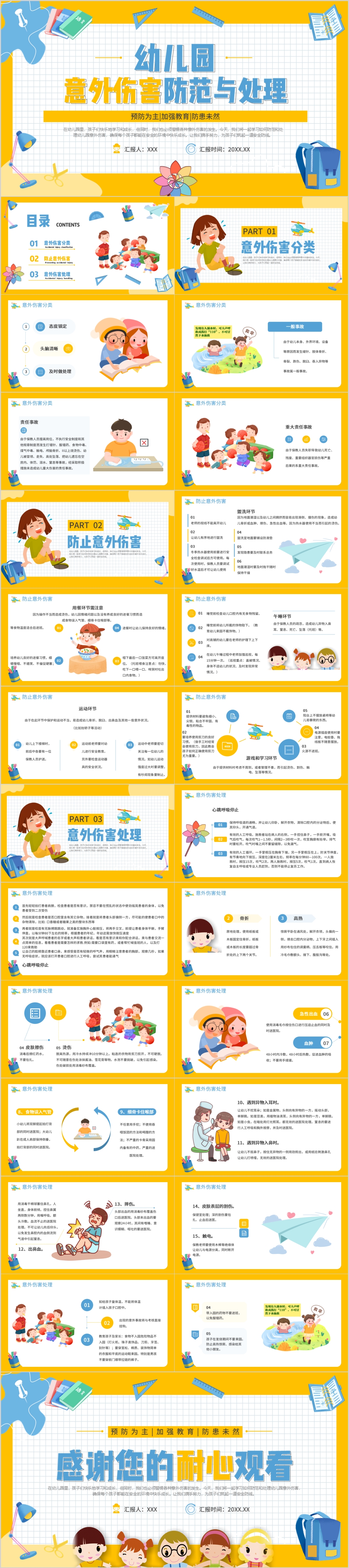 卡通简约风幼儿园意外伤害防范与处理主题班会PPT模板