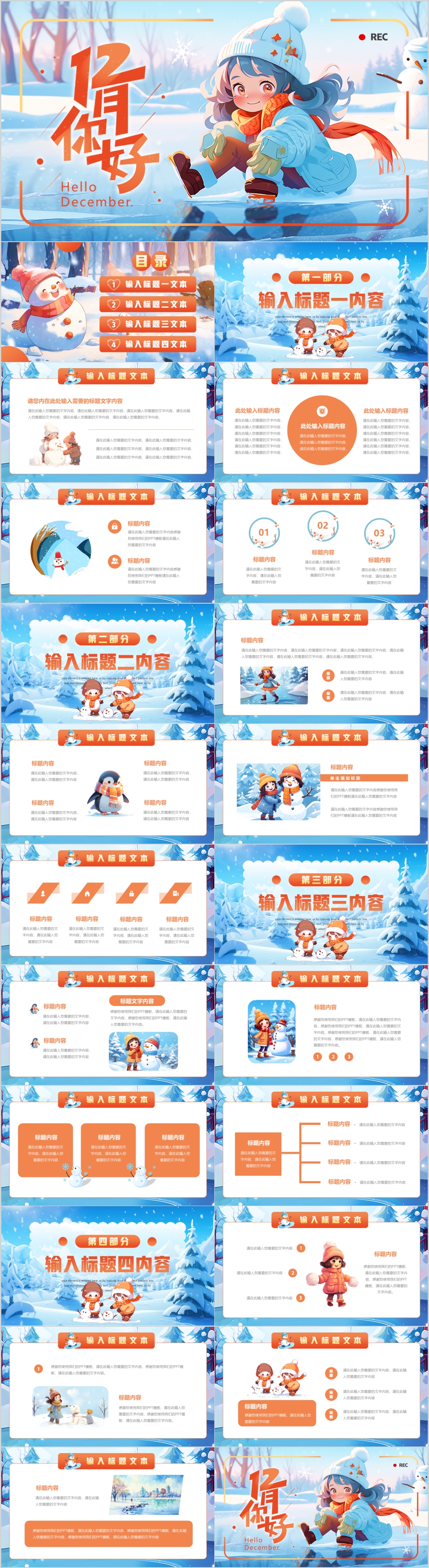 卡通冬季冬天你好十二月主题教育说课班会通用PPT模板