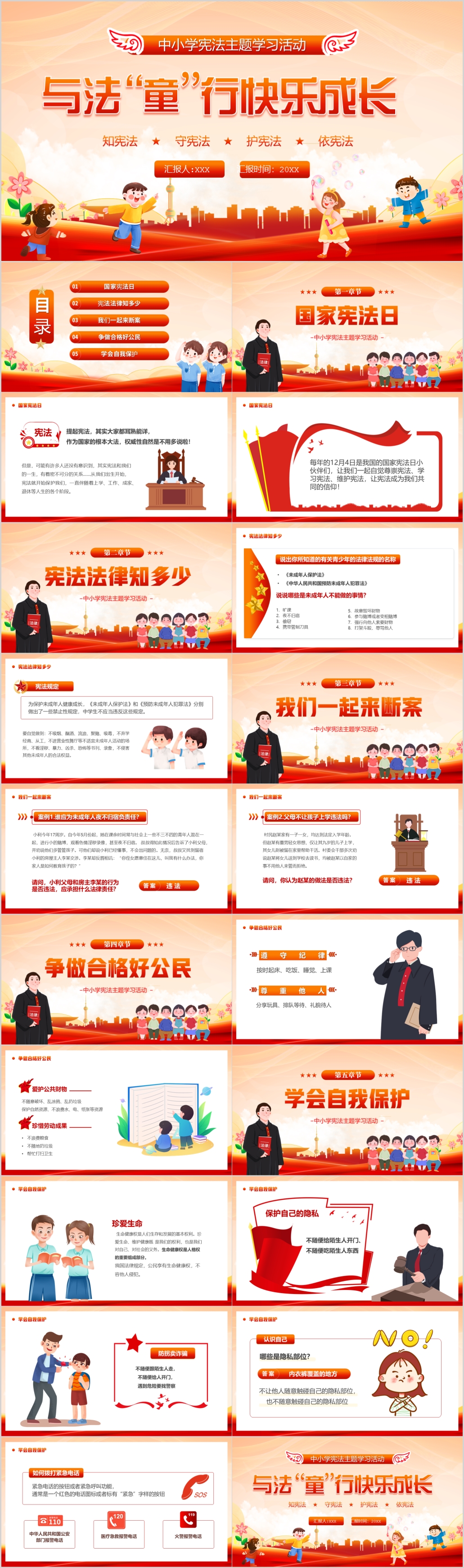 卡通与法童行国家宪法日学宪法主题学习活动课件PPT模板