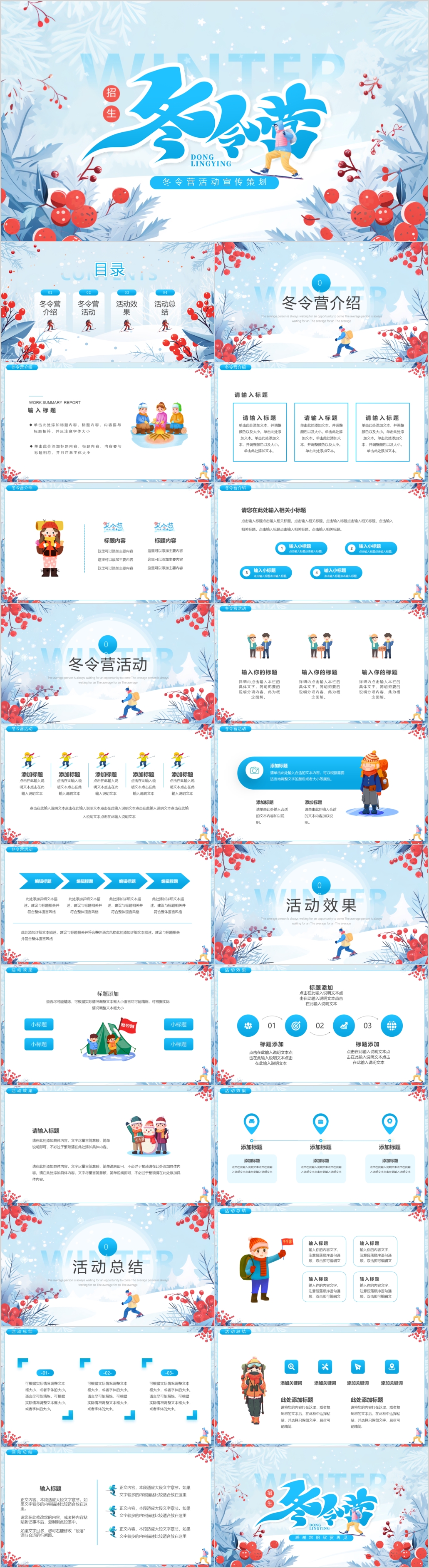 蓝色卡通寒假冬令营招生宣传介绍ppt模板