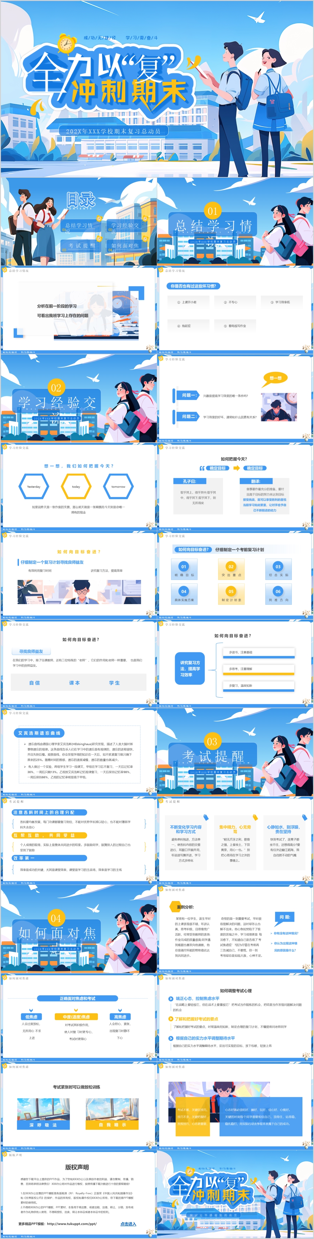 2024年全力以复期末冲刺学校学期工作总结ppt模板