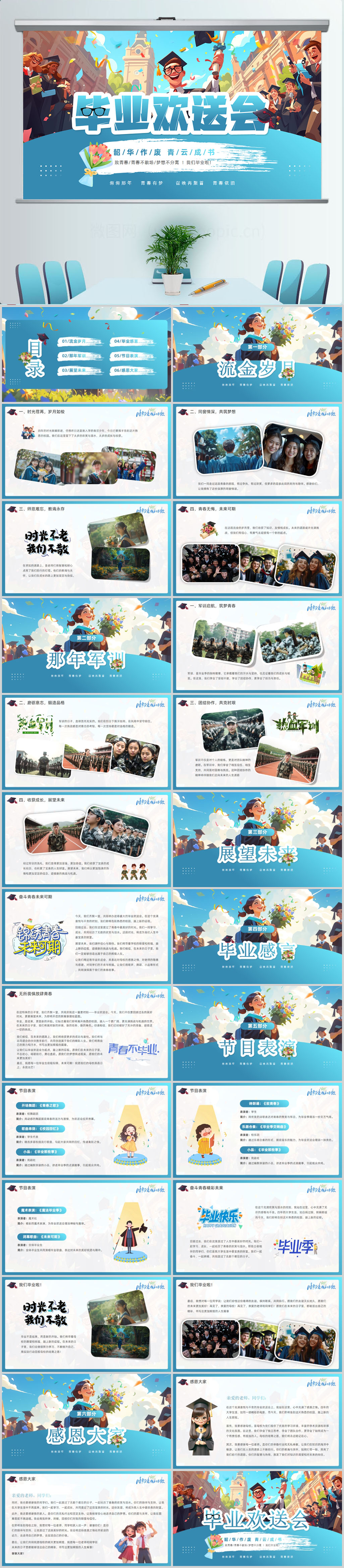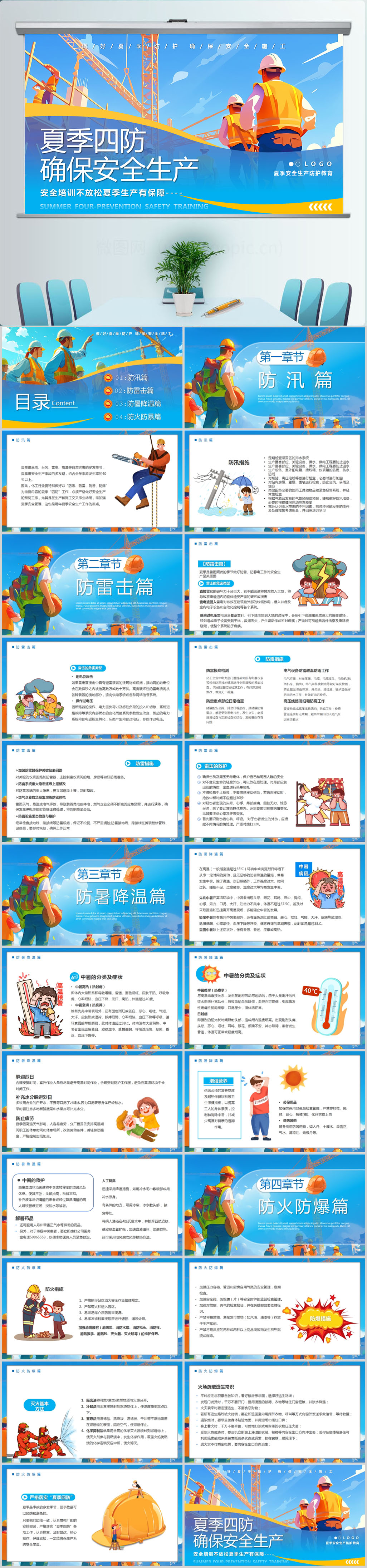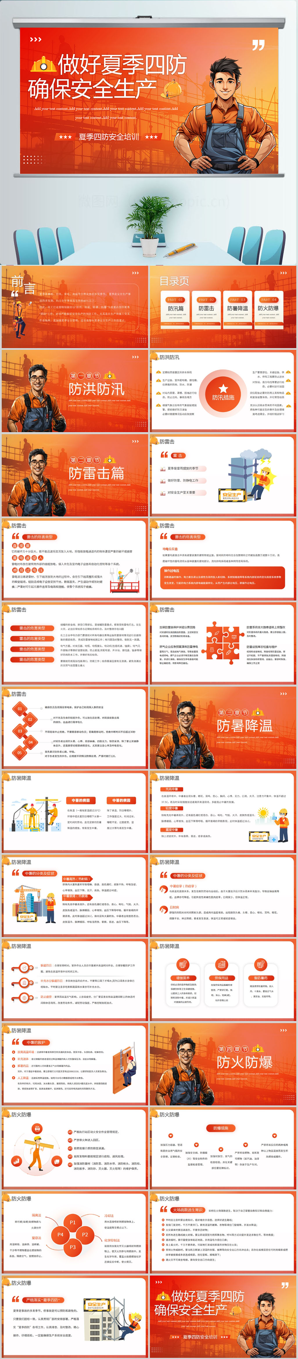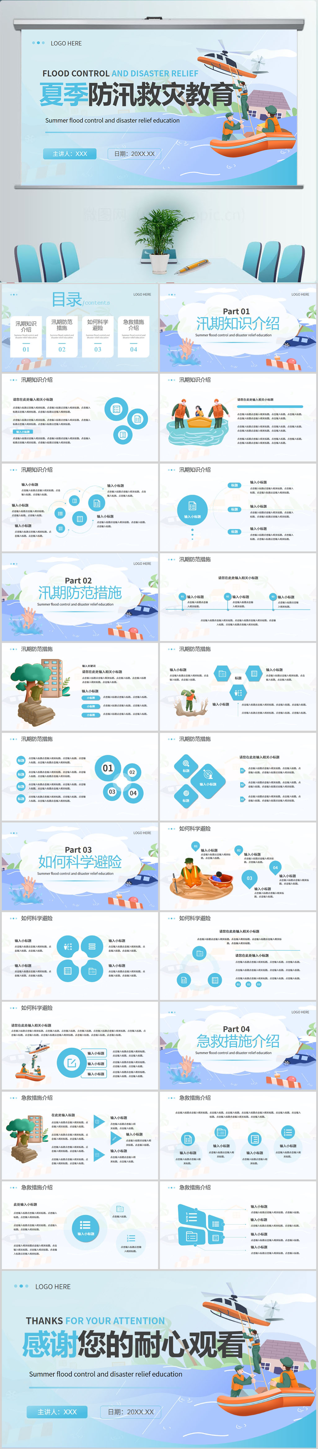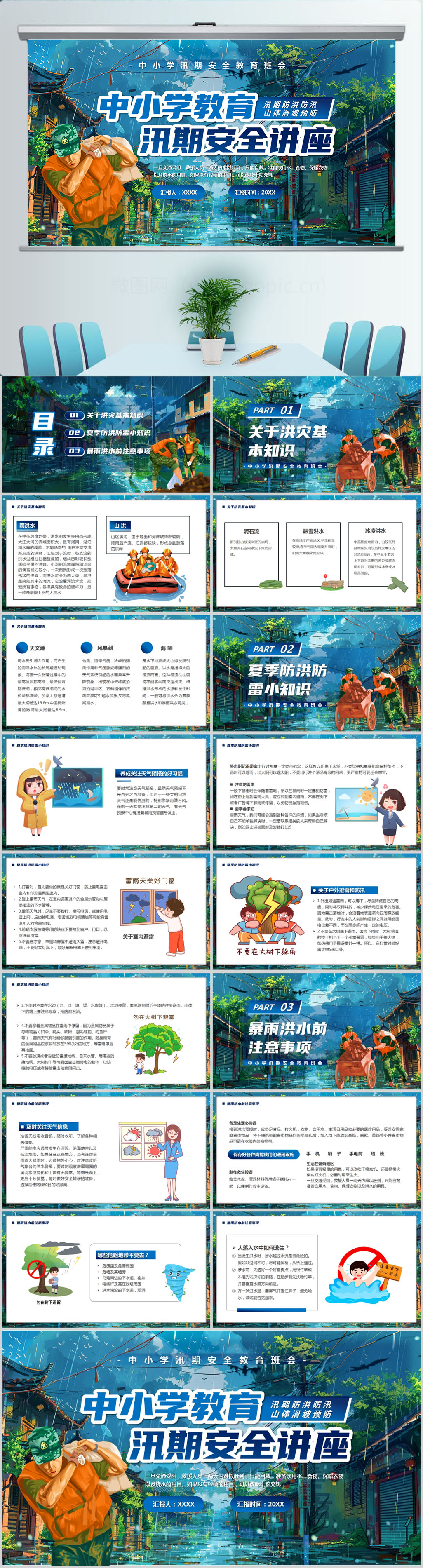 防灾减灾防洪救灾汛期自救常识卡通PPT模版