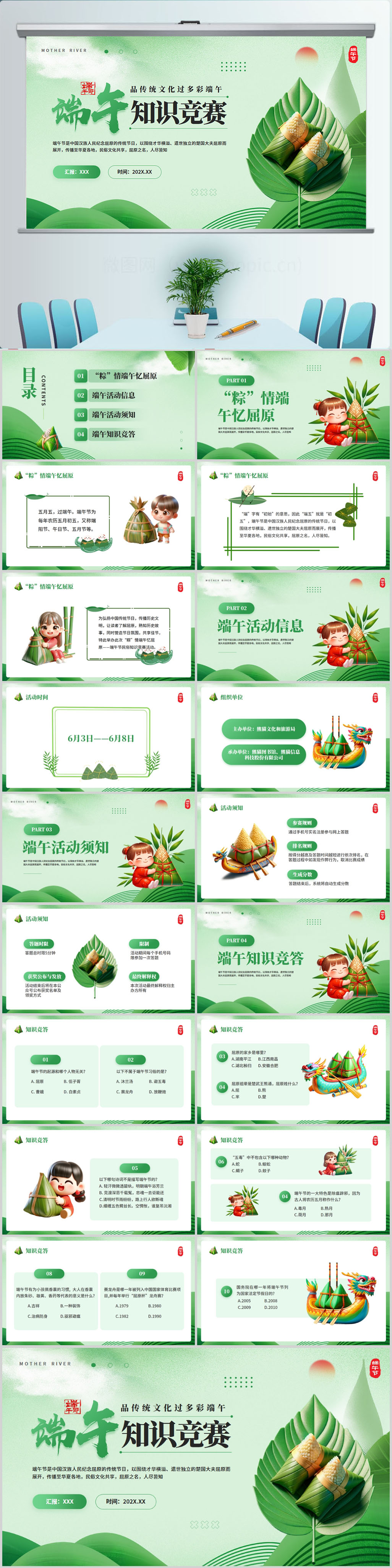 端午诗词竞赛知识竞赛活动宣传PPT模板设计