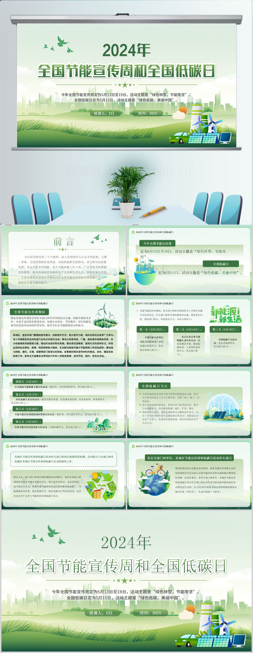 2024年全国节能宣传周和低碳日主题PPT模版《含WORD文件》