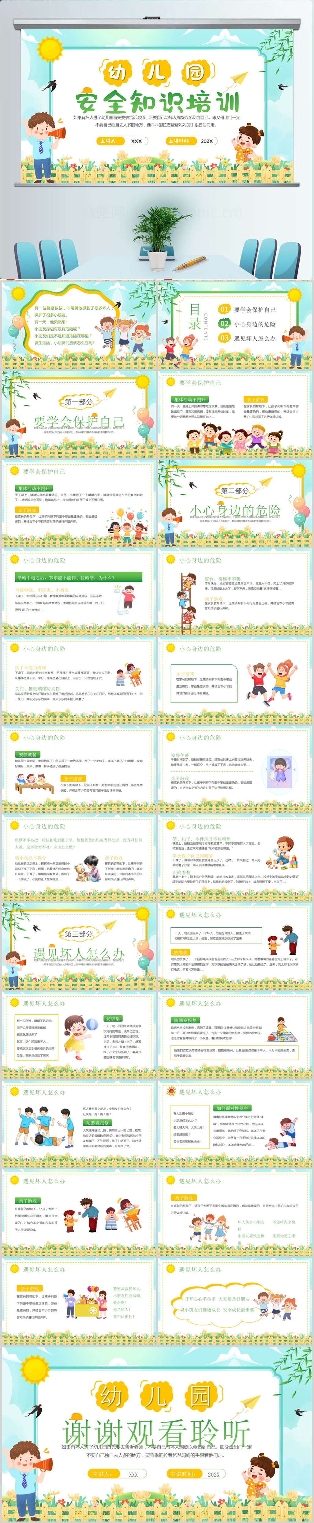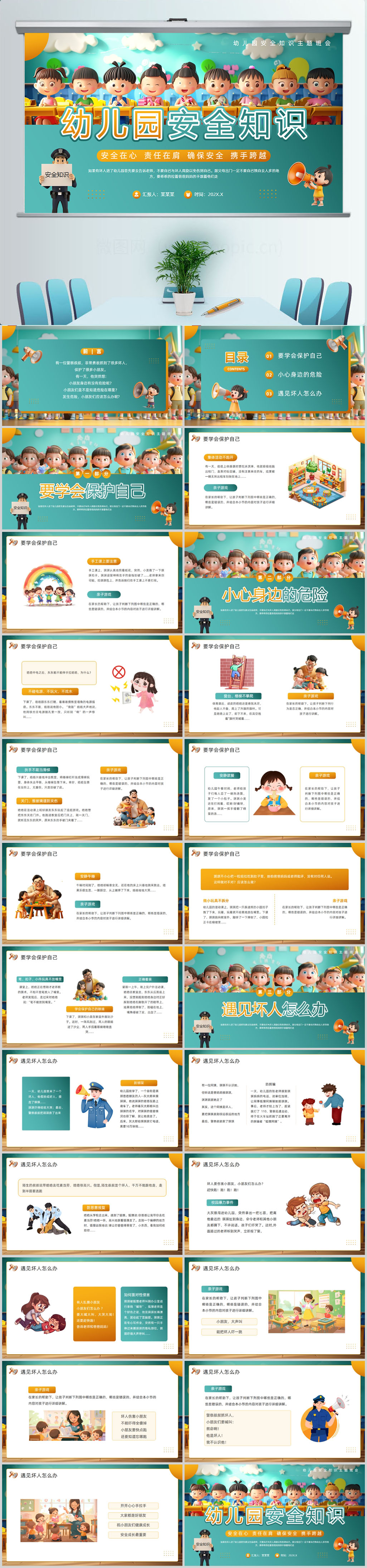 幼儿园安全教育自我防护知识动态PPT模板设计