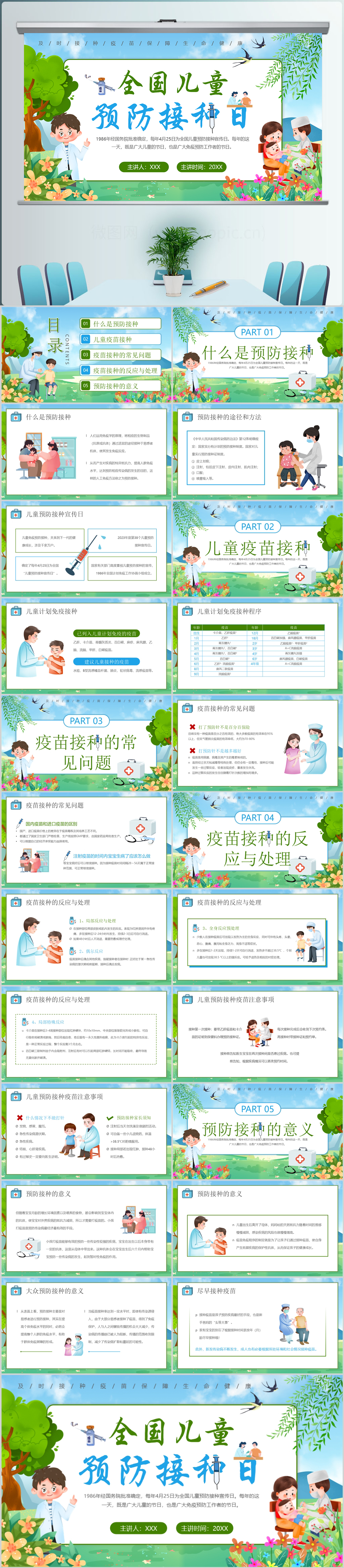 卡通全国儿童预防接种日宣传主题科普ppt模板