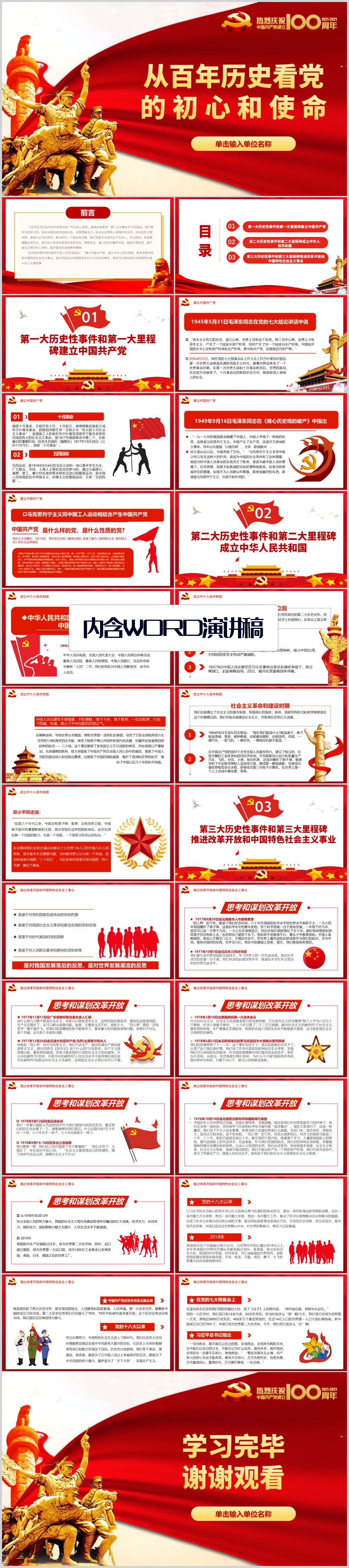 四史学习教育党史新中国史改革开放史社会主义发展史PPT(内含WORD演讲稿)