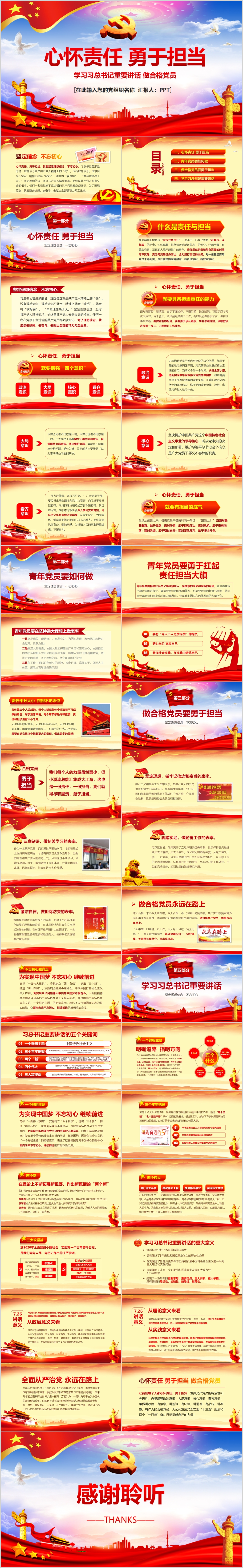 心怀责任勇于担当不忘初心做合格党员PPT(内含WORD演讲稿)