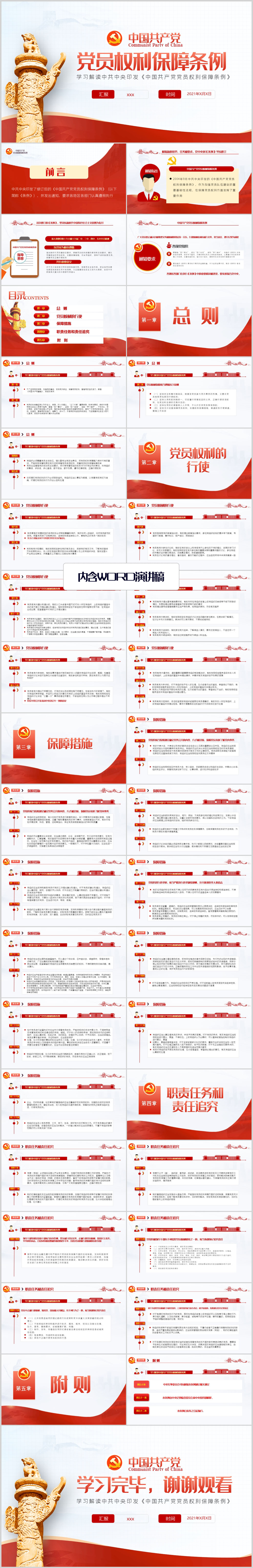 学习解读中国共产党党员权利保障条例党课PPT模板(内含WORD演讲稿)
