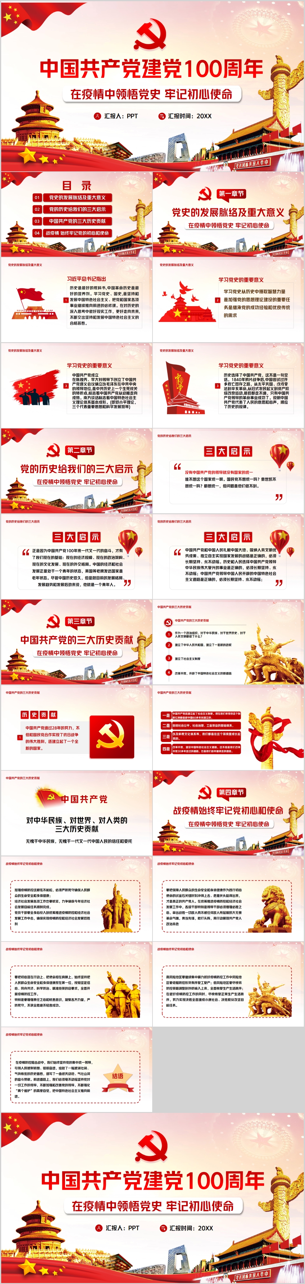 中国共产党建党100周年从百年历史看党的初心和使命七一建党节党课PPT模板(内
