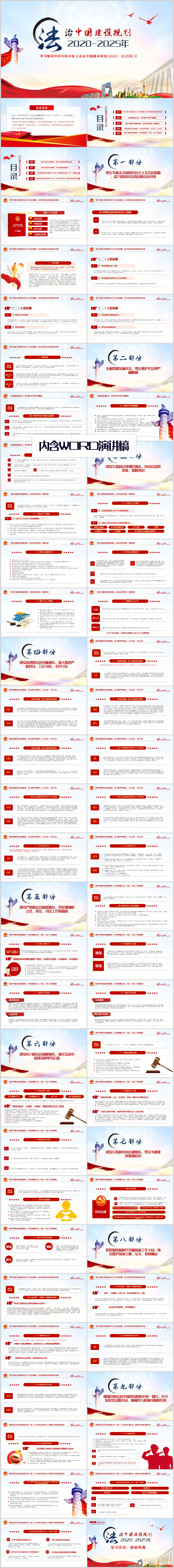 学习法治中国建设规划(2020-2025年)全文解读ppt模板(内含WORD演讲稿)