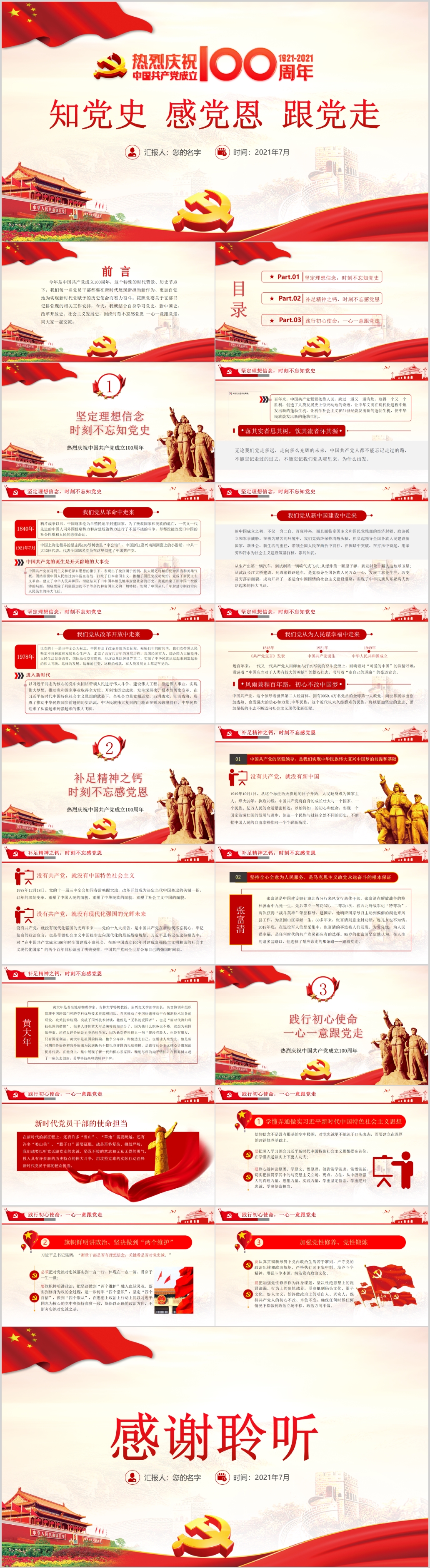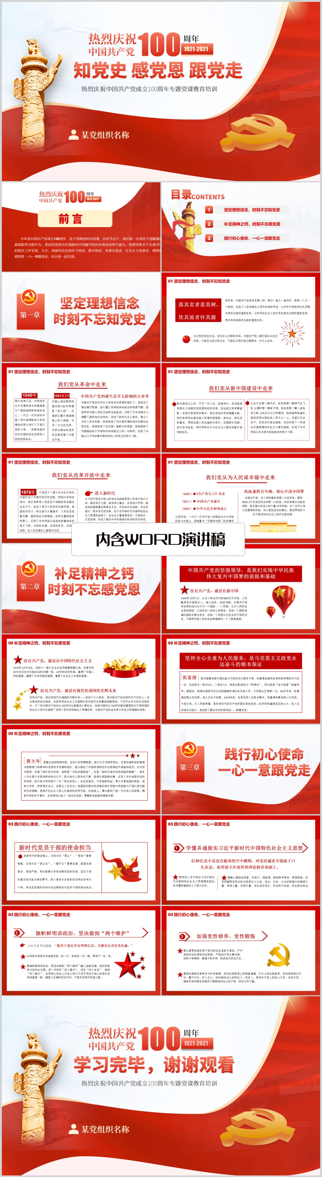 基层党员干部学习知党史感党恩跟党走建党100周年专题党课PPT模板(内含WORD演