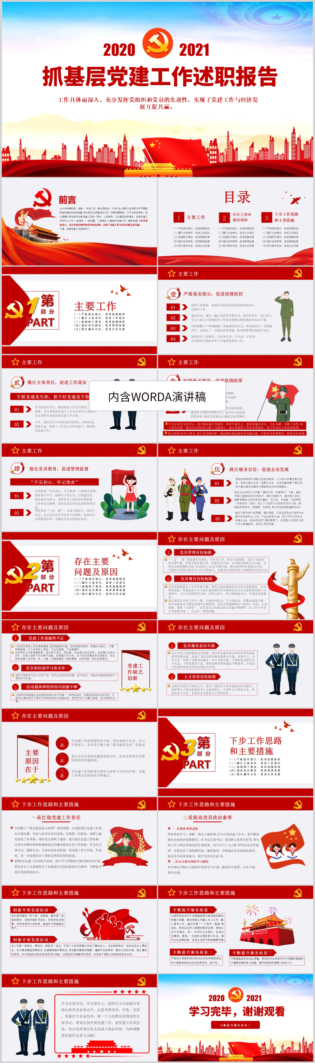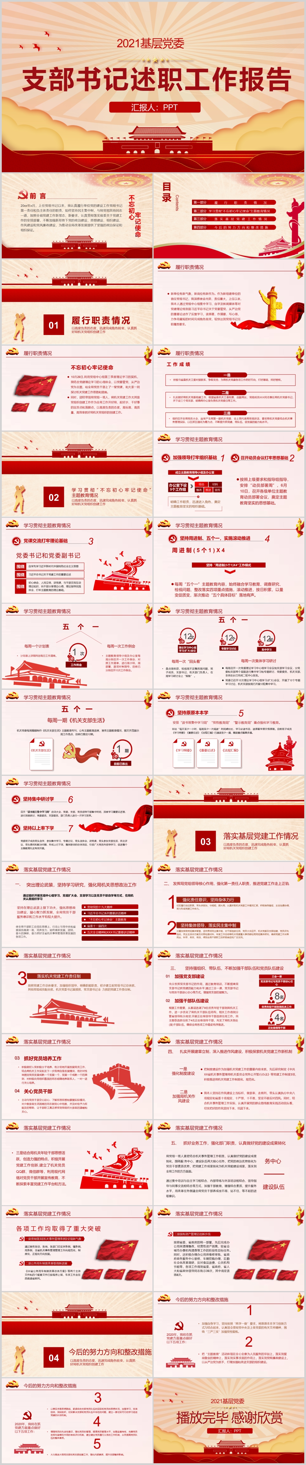 企业公司2021党支部书记抓基层党建年终工作述职报告ppt模板(内含WORD演讲稿)
