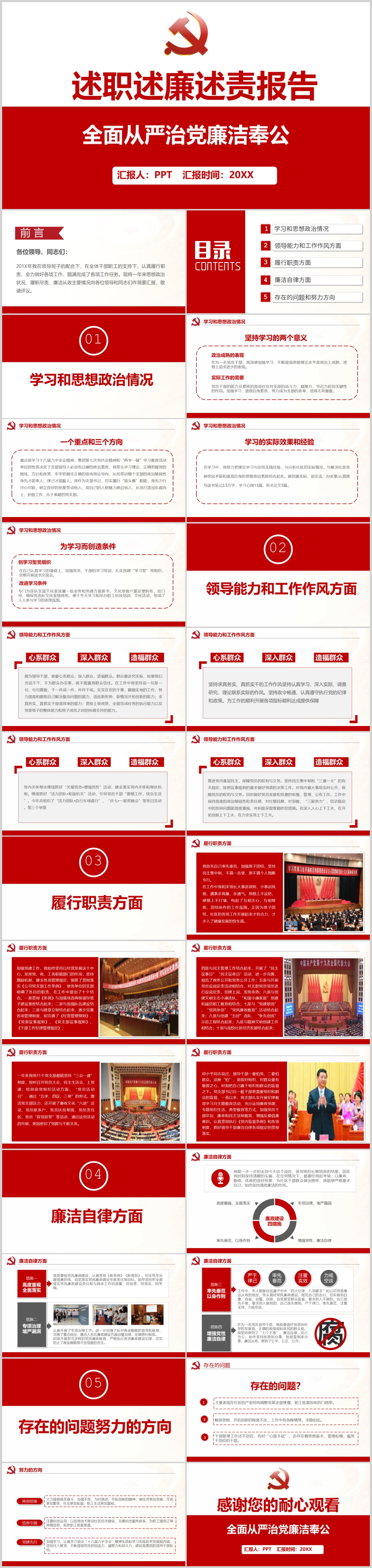 2021领导干部抓党建述职述廉述责报告PPT模板