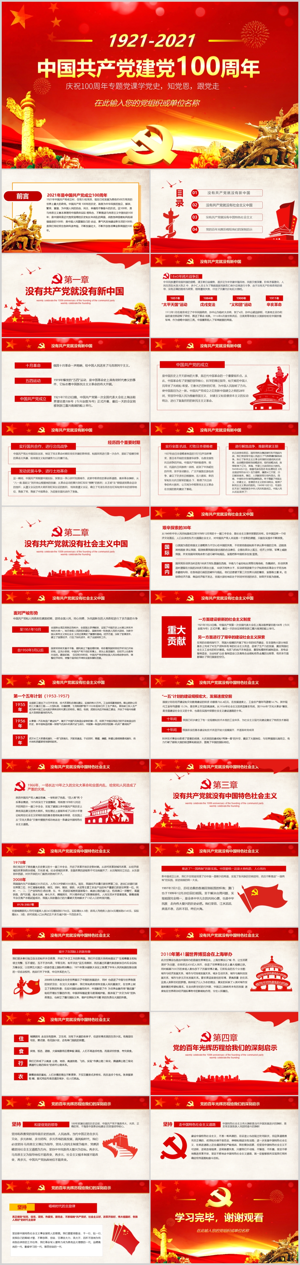 红色大气中国共产党建党100周年学党史颂党恩跟党走党史国史党课PPT