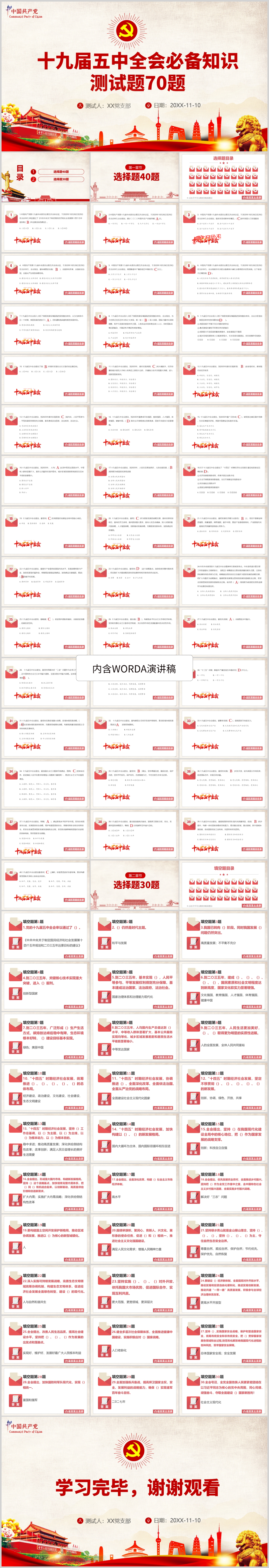 十九届五中全会应知应会党员学习知识测试问答题PPT模板(内含WORD演讲稿)