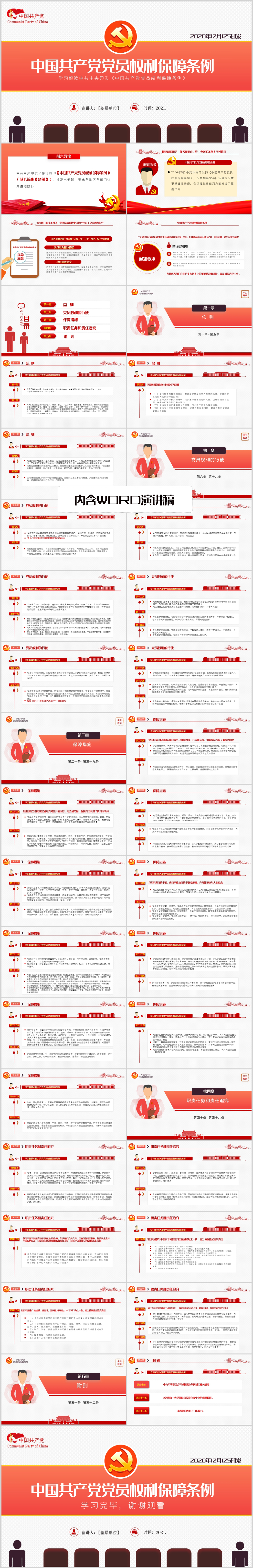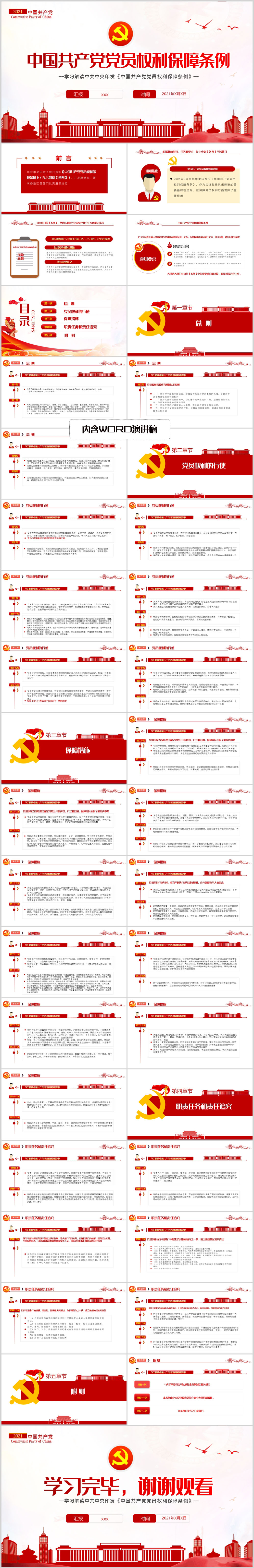 新修订中国共产党党员权利保障条例解读ppt模板党课(内含WORD演讲稿)