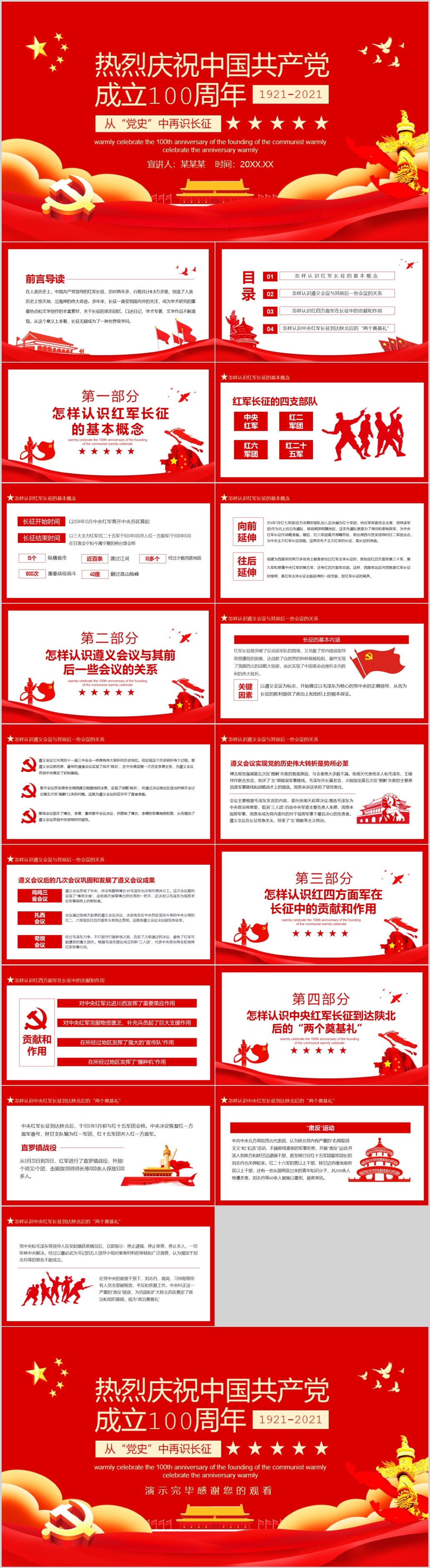 建党100周年从党史中再识长征七一建党节党课PPT(内含WORD演讲稿)