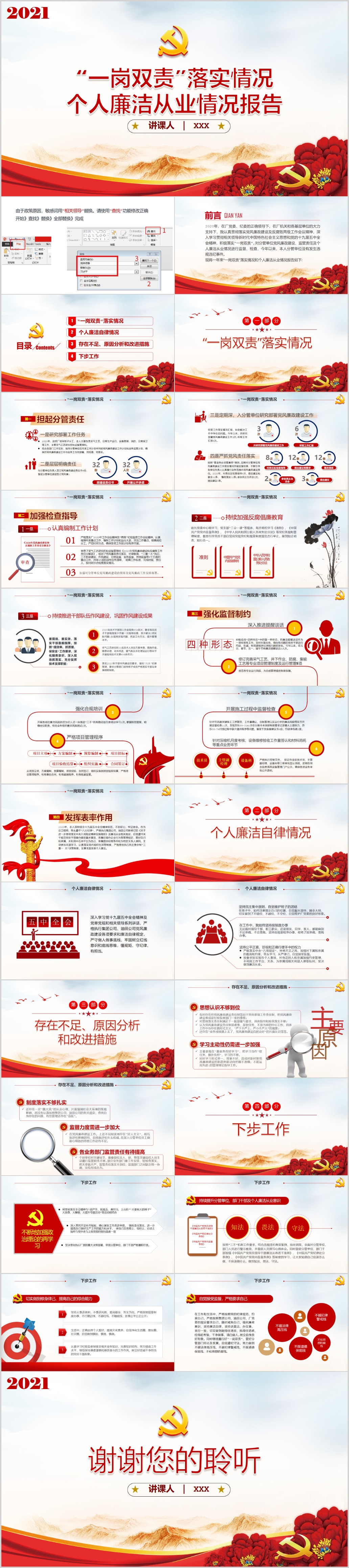 2021一岗双责落实情况基层党员廉洁从业述职报告党建ppt(内含WORD演讲稿)