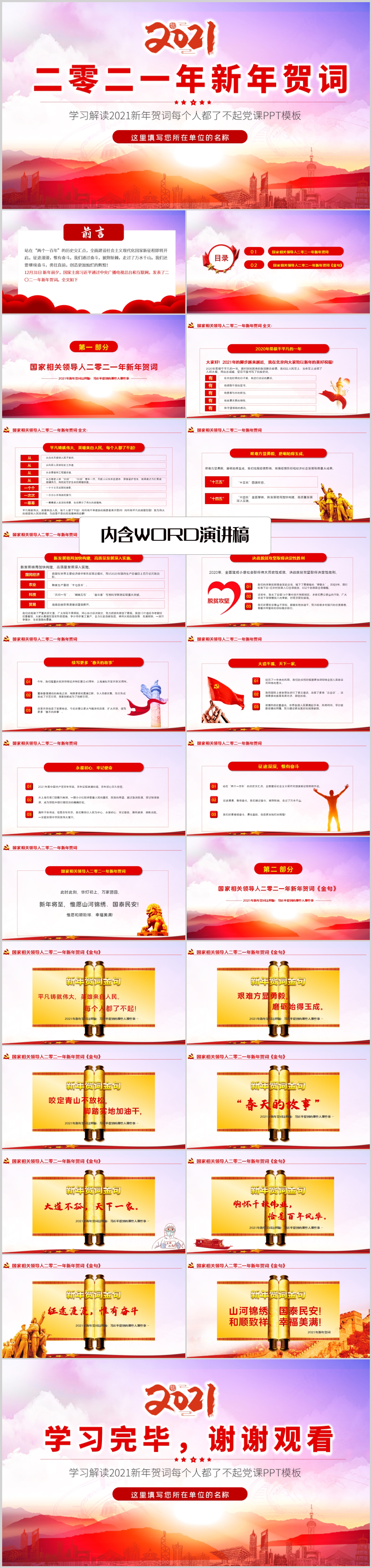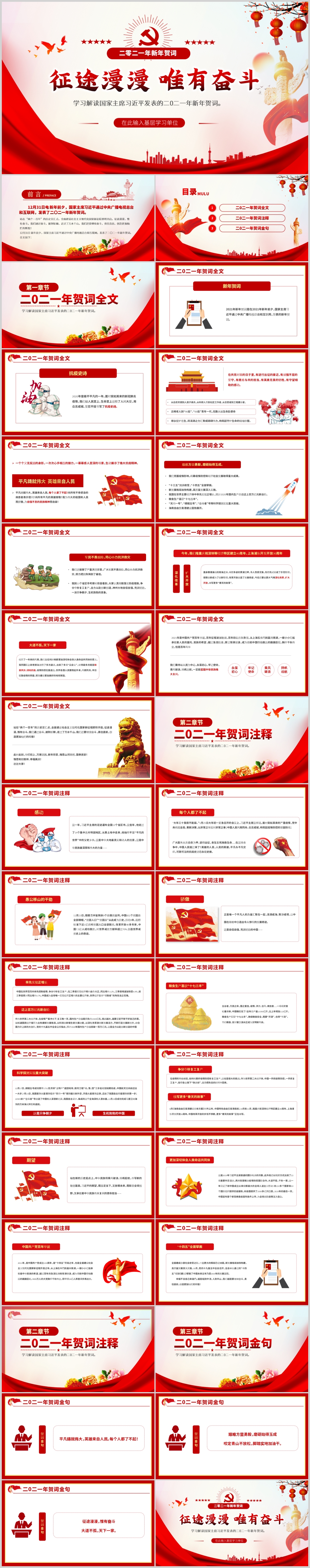 学习2021二零二一年新年贺词详细解读党课PPT模板(内含WORF演讲稿)