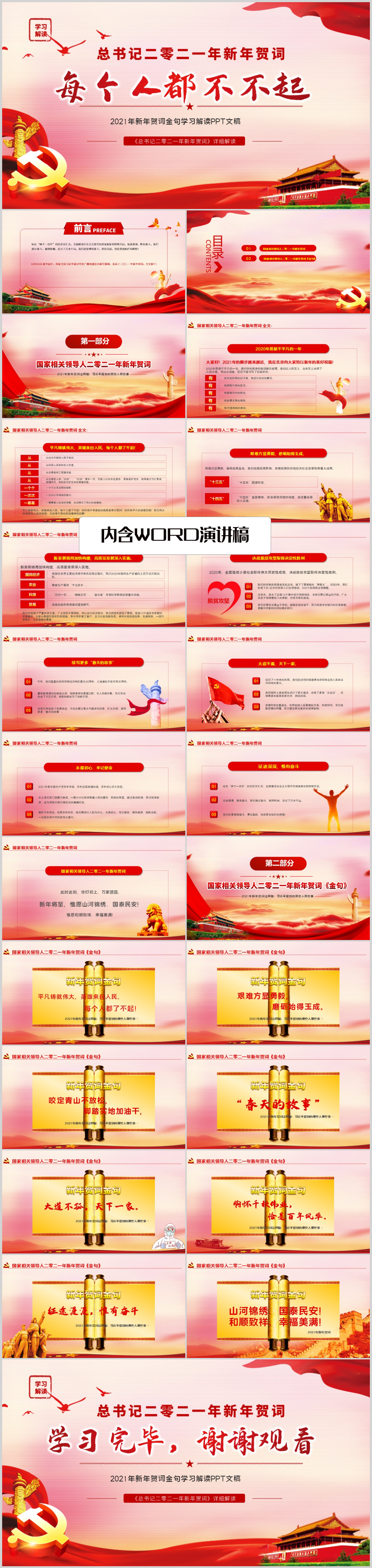学习解读2021新年贺词金句党课PPT模板(内含WORD演讲稿)