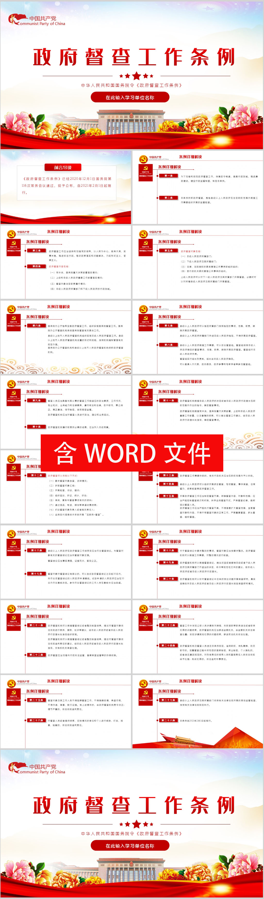 学习政府督查工作条例PPT模版(内含WORD演讲稿)