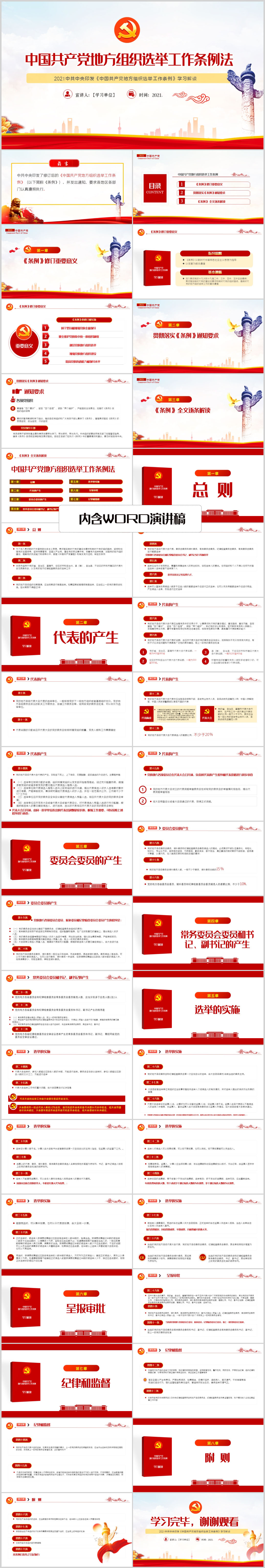 学习中国共产党地方组织选举工作条例党课PPT模板(内含WORD演讲稿)