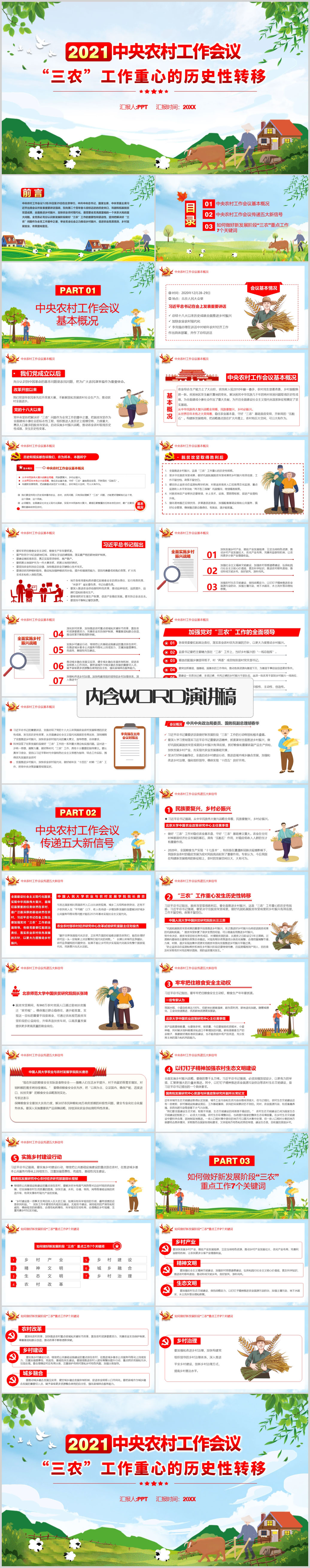 2021中央农村工作会议三农政策农民农业党建党课PPT模板(内含WORD演讲稿)