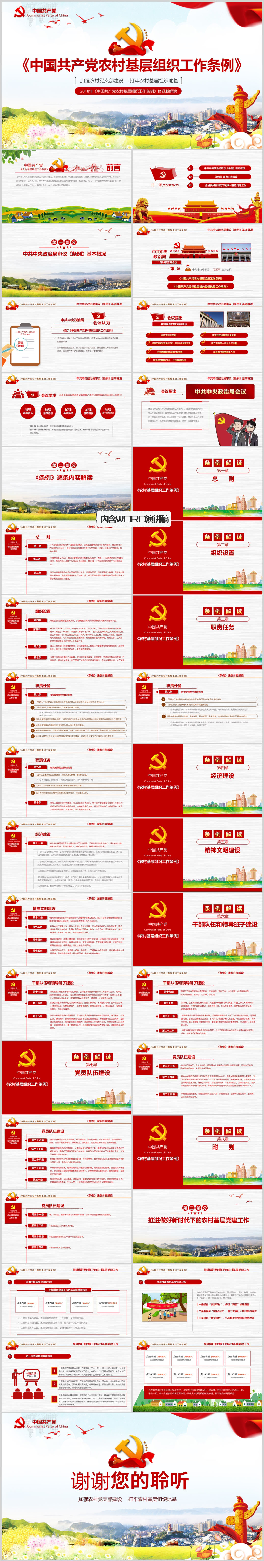 学习中国共产党农村基层组织工作条例解读农村组织党课PPT模板(内含WORD演讲