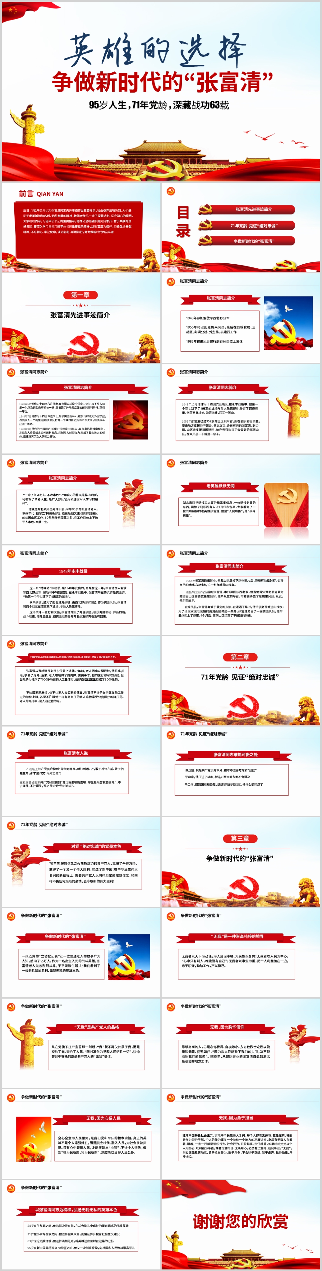 学习张富清先进事迹心得体会弘扬奉献精神党课PPT模板