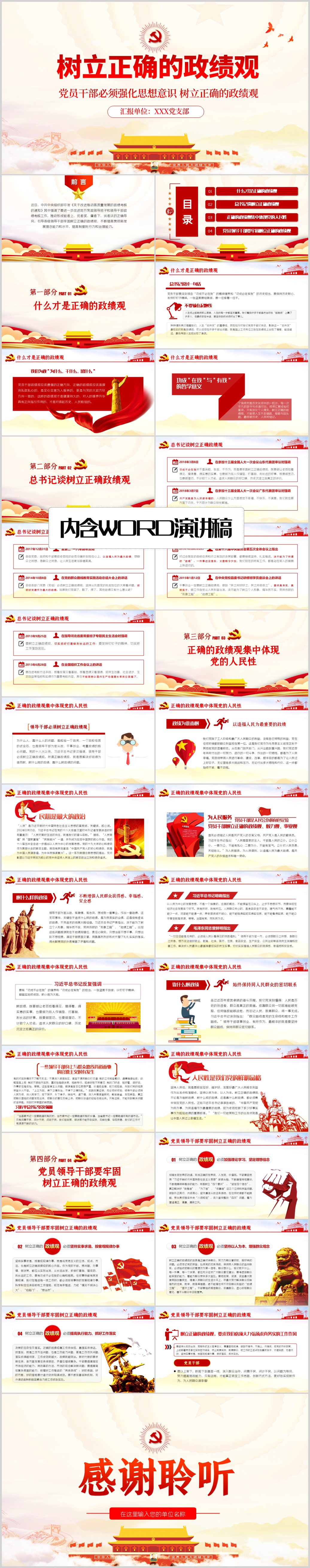 学习树立正确的政绩观坚持以人民为中心党员干部教育专题党课PPT模板(内含