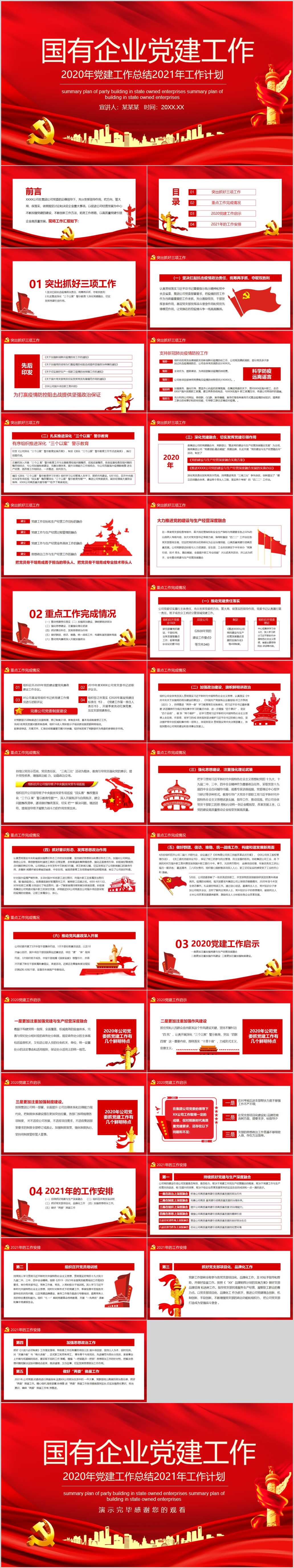 2021年国有企业党建工作总结工作计划PPT(内含WORD演讲稿)