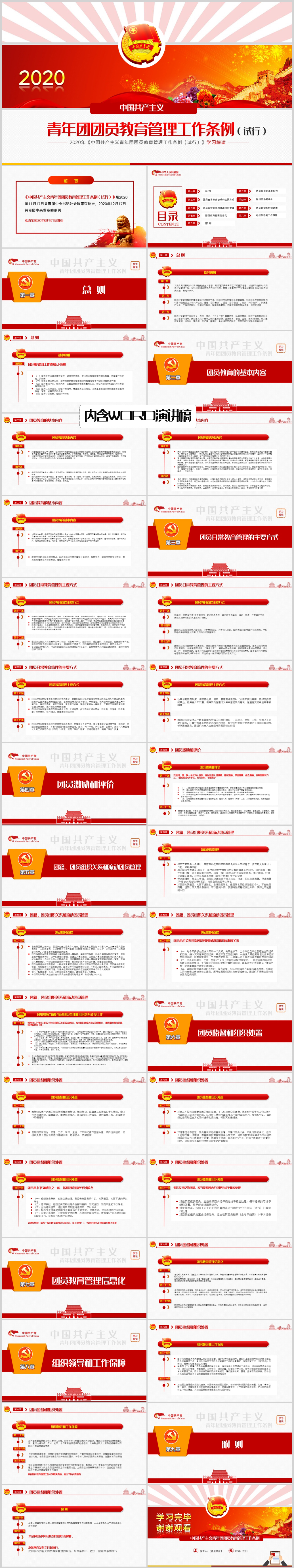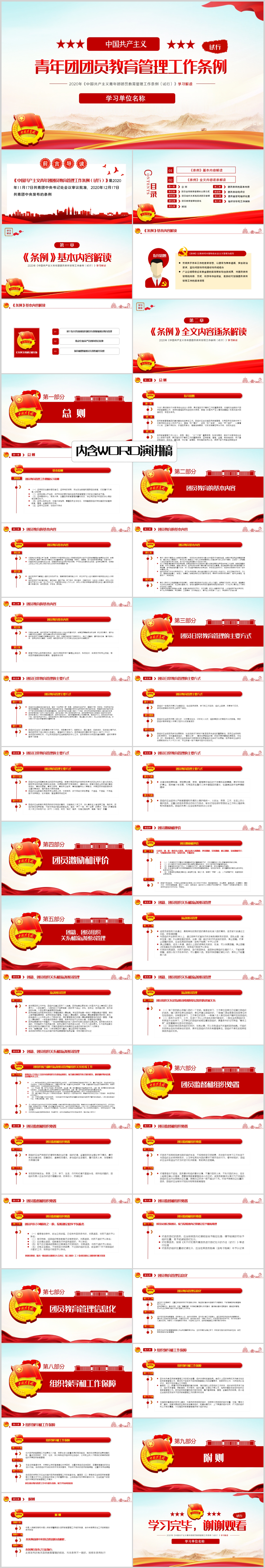 学习中国共产主义青年团团员教育管理工作条例(试行)解读ppt模板(内含WORD演讲