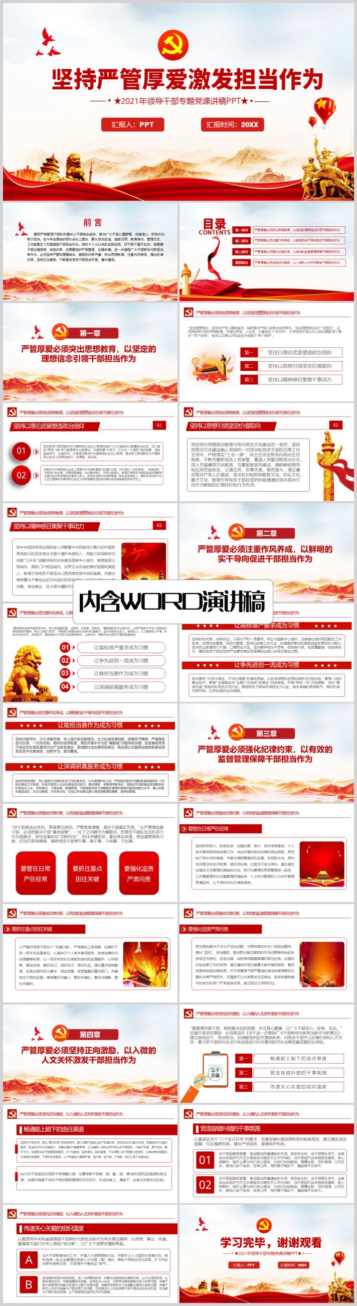 学习坚持严管厚爱激发担当作为做党员干部专题党课PPT模板(内含WORD演讲稿)