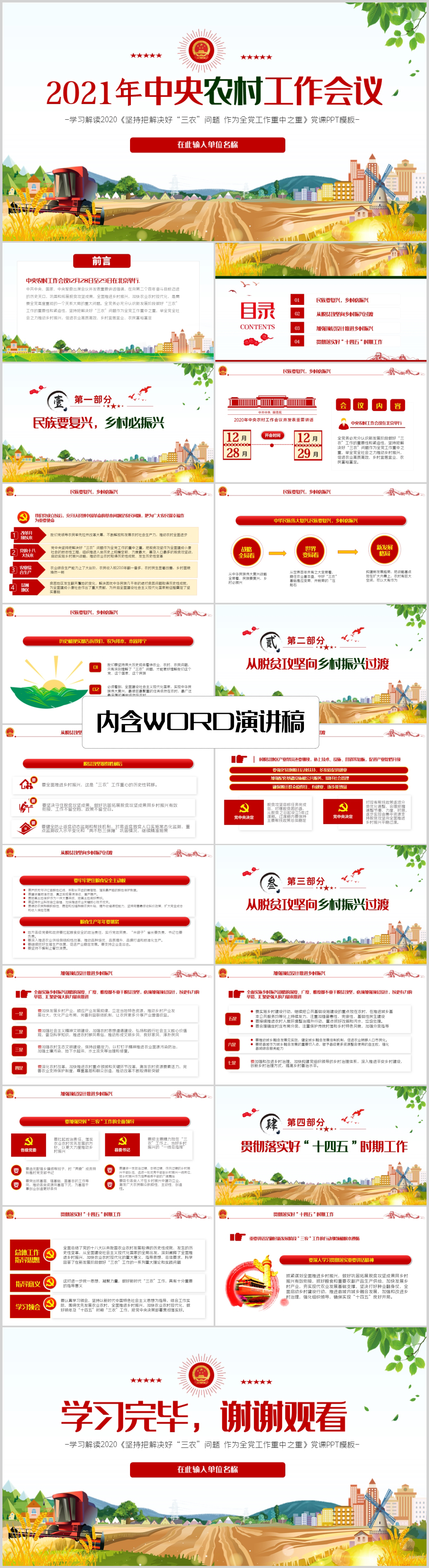 2021年中央农村工作会议重要讲话精神解读党课PPT模板(内含WORD演讲稿)