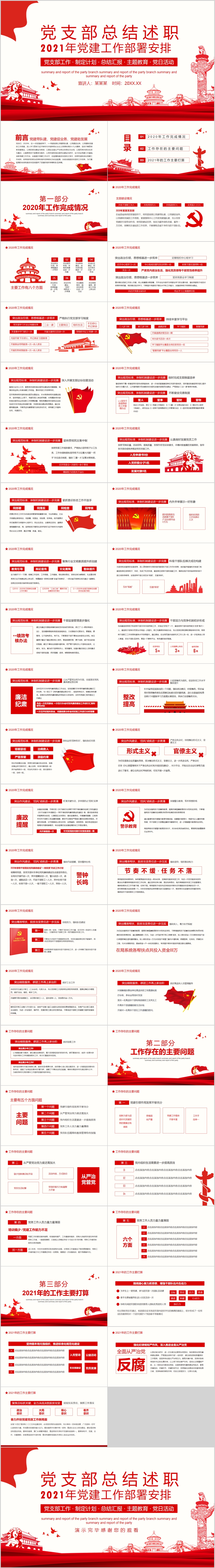 2021年党委党支部党建党政工作计划党课PPT模板(内含WORD演讲稿)