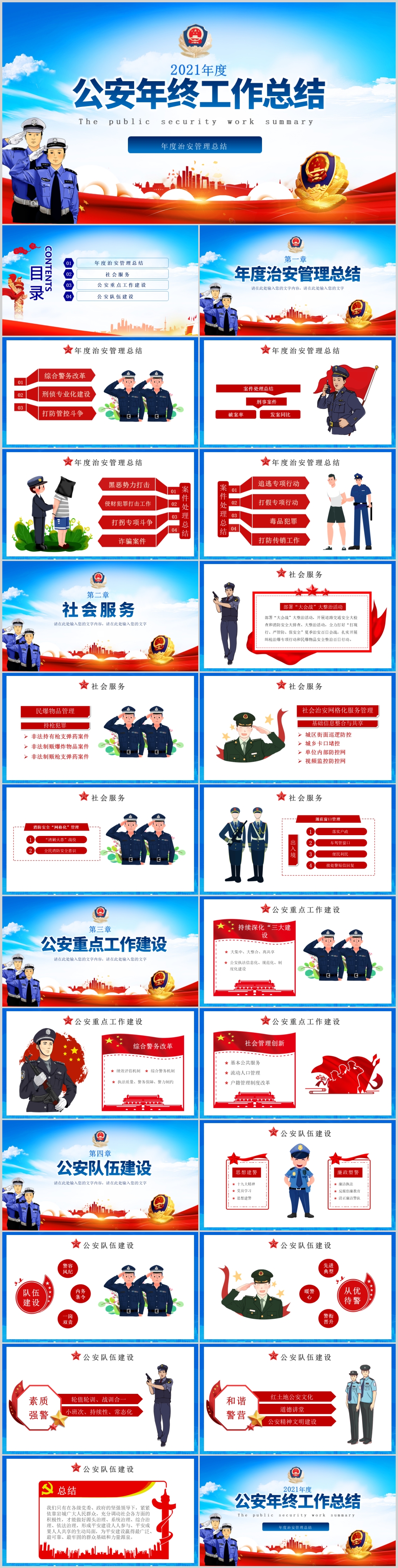 蓝色大气2021公安社会治安管理年终工作总结ppt模板