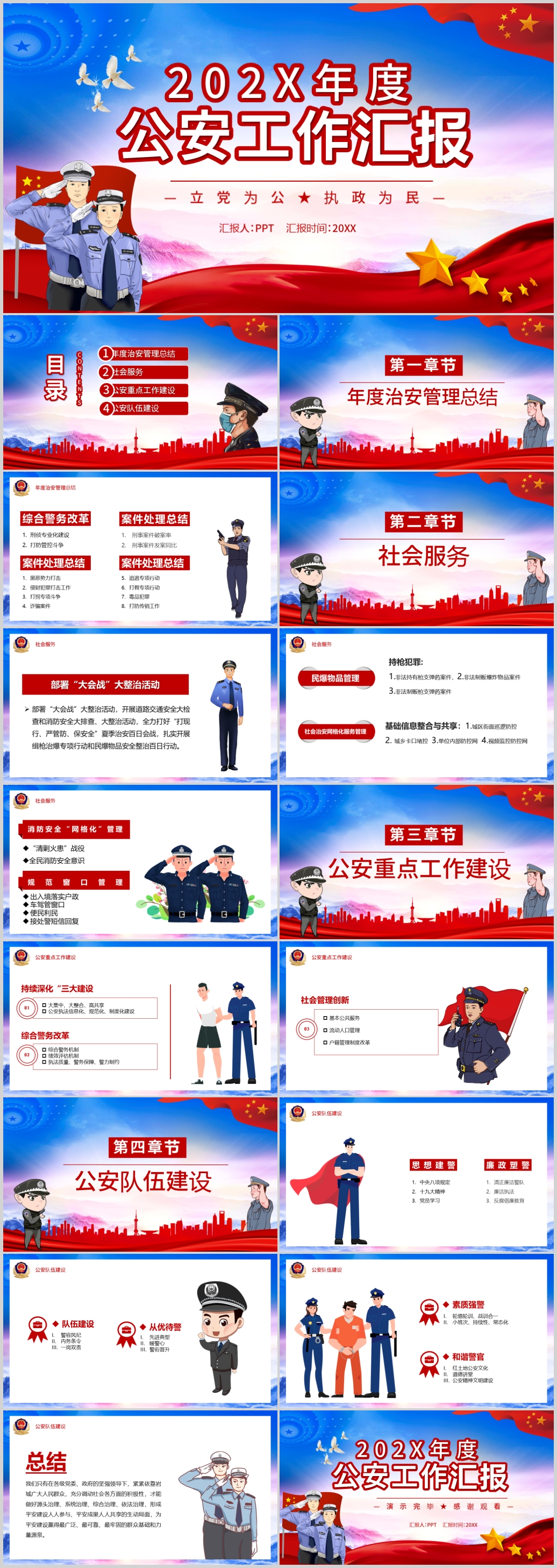 2021年蓝色公安警察年终工作总结述职报告动态PPT模板