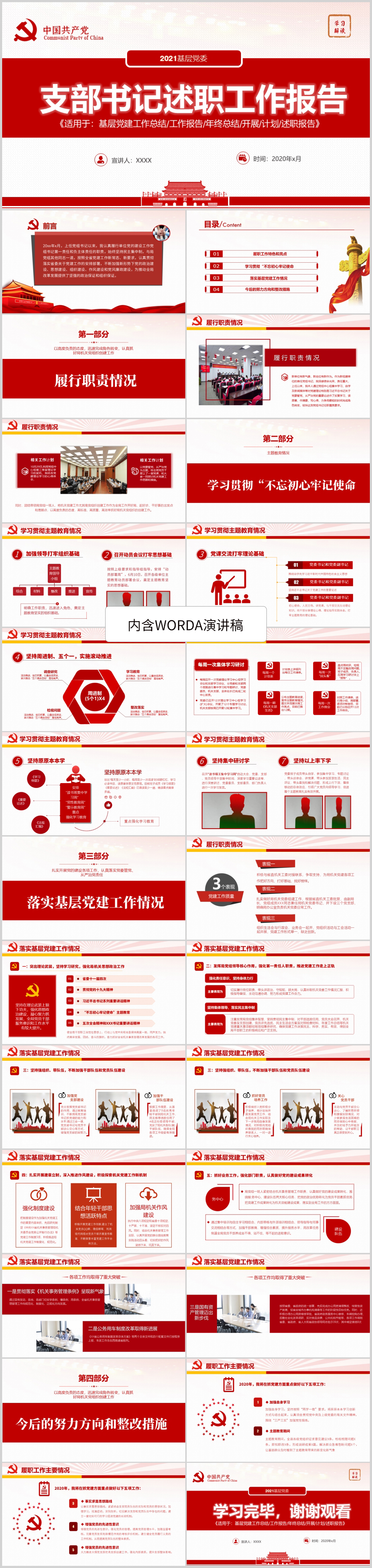 2021党支部年终工作总结述职报告PPT(内含WORD演讲稿)