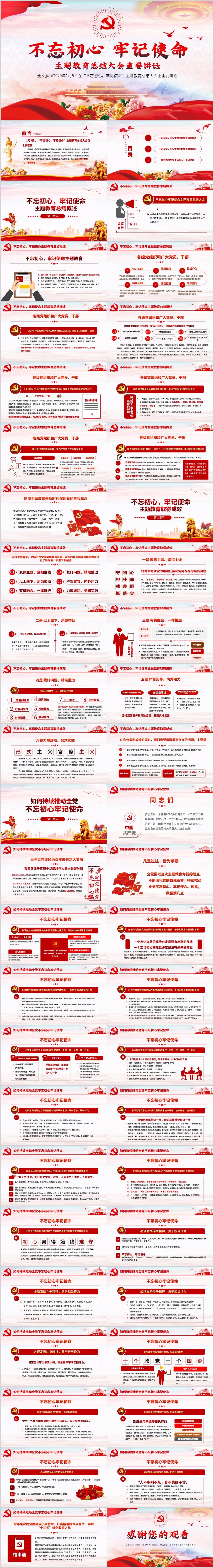 不忘初心牢记使命主题教育总结讲话完整解读PPT(内含WORD演讲稿)