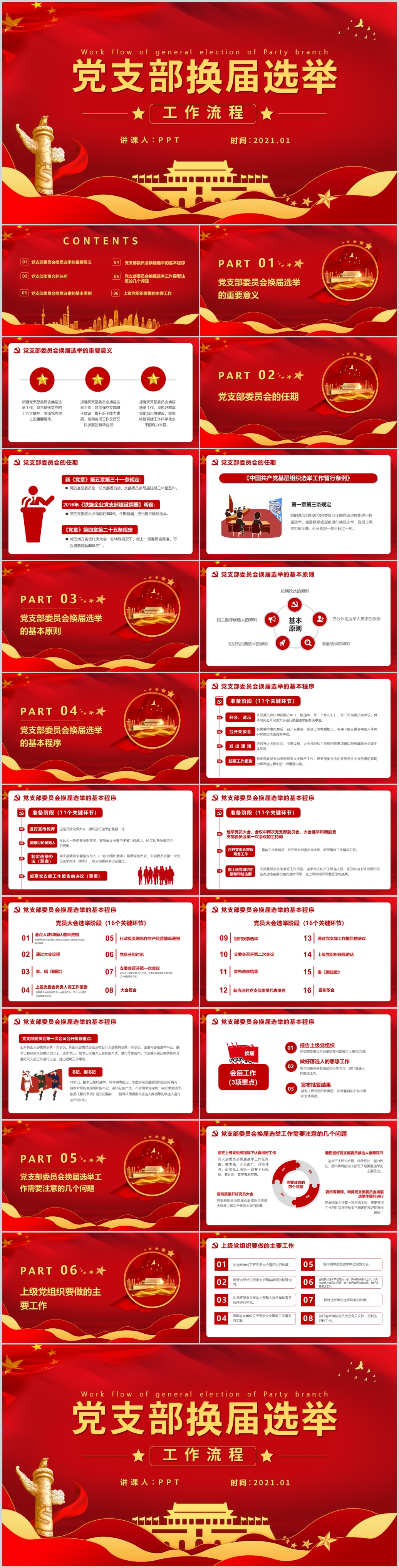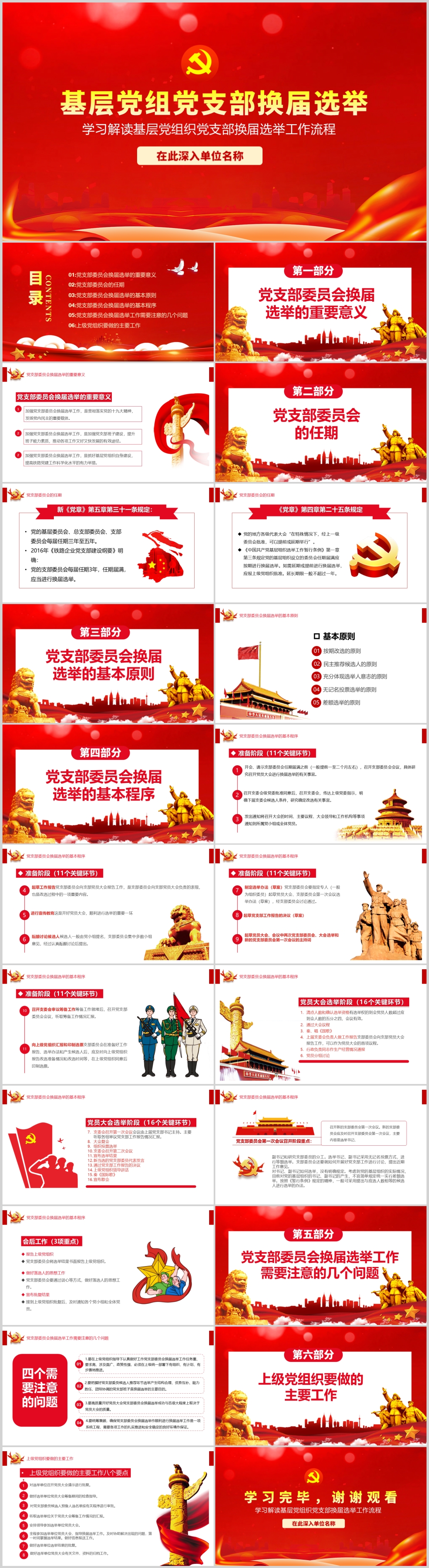 红色大气基层党组织党支部换届选举工作流程党课PPT模板