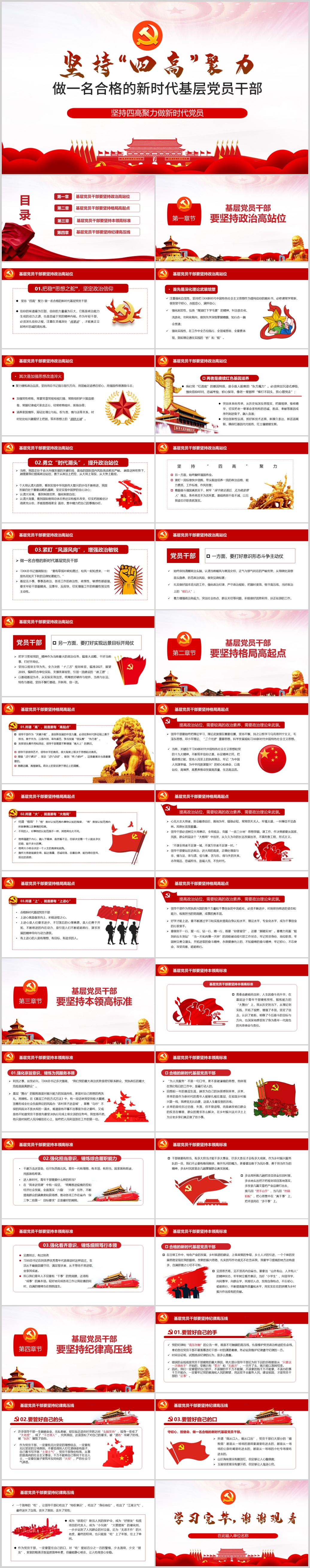 基层党员干部学习坚持四高聚力做新时代合格党员党课PPT模板