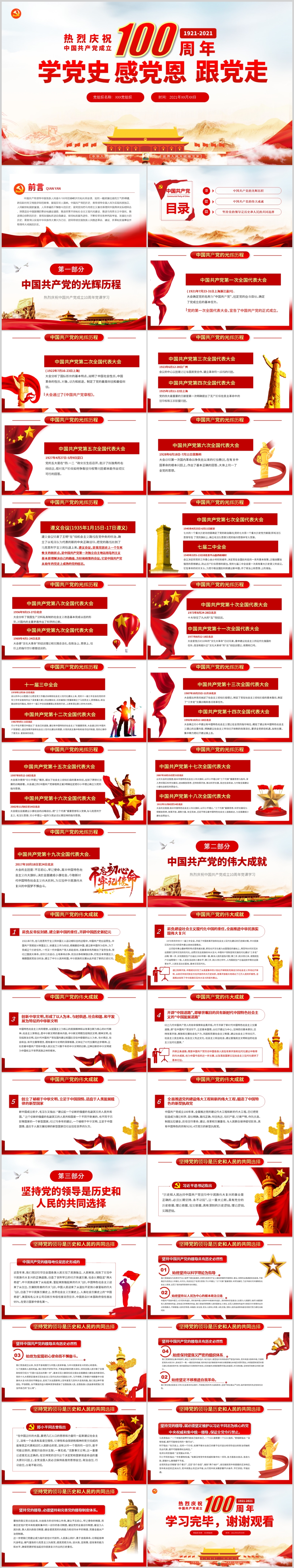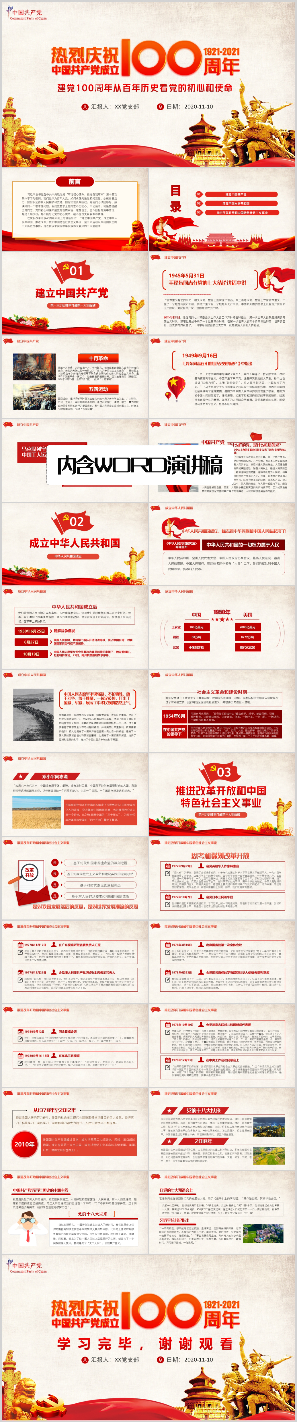 中国共产党建党100周年初心使命党史七一党课PPT模板(内含WORD演讲稿)