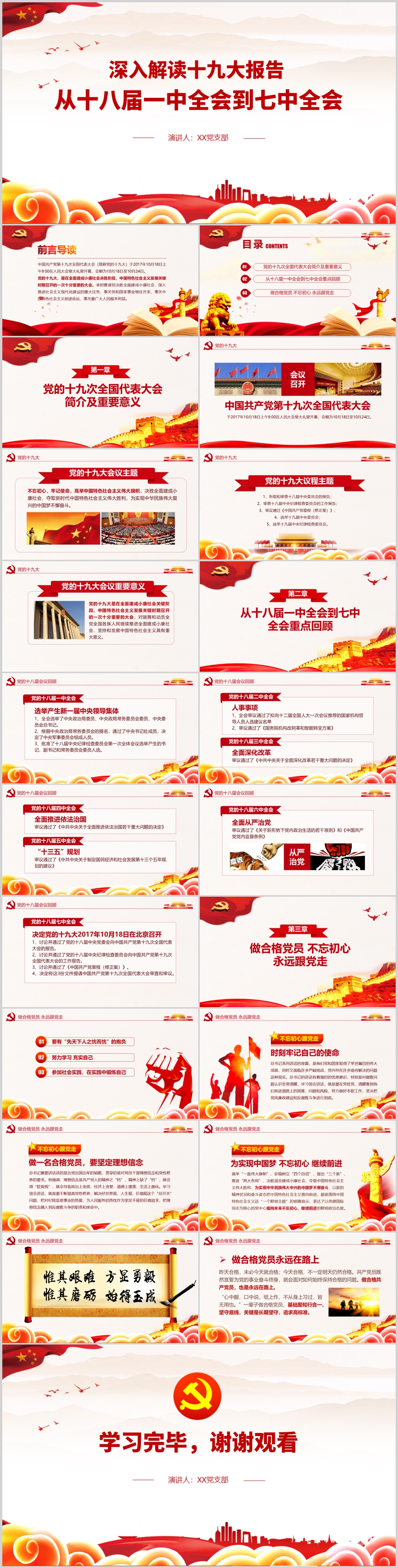 深入学习十九大报告十八届一中全会到七中全会解读党课PPT模板
