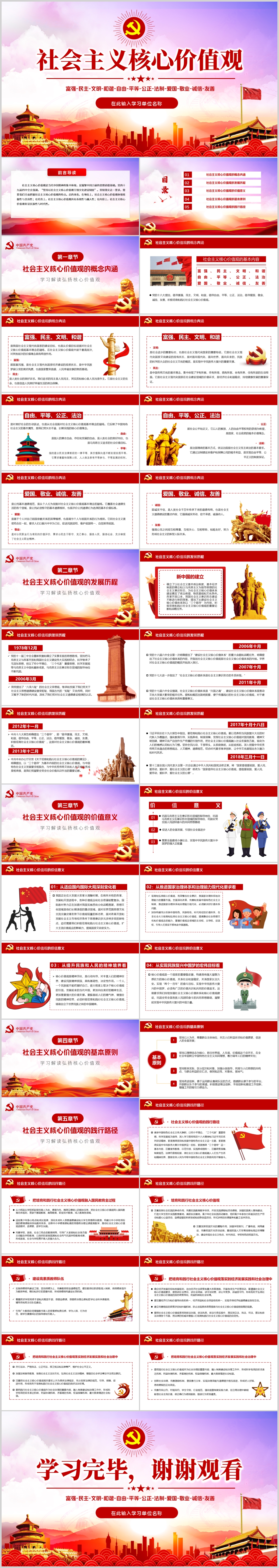弘扬社会主义核心价值观精神学习解读党课PPT模板