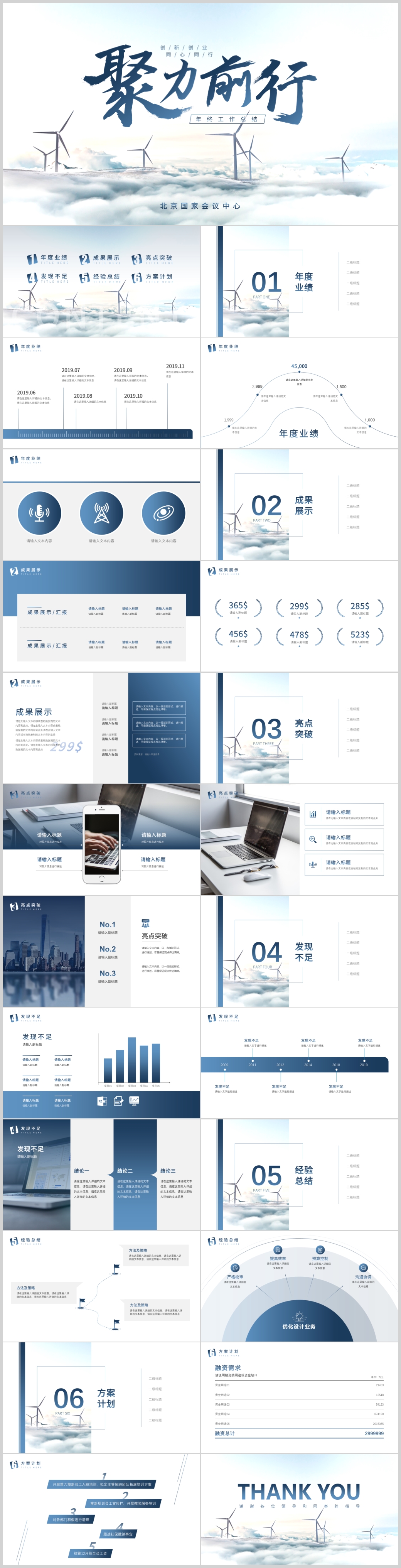 2021 蓝色聚力前行工作总结商务通用PPT