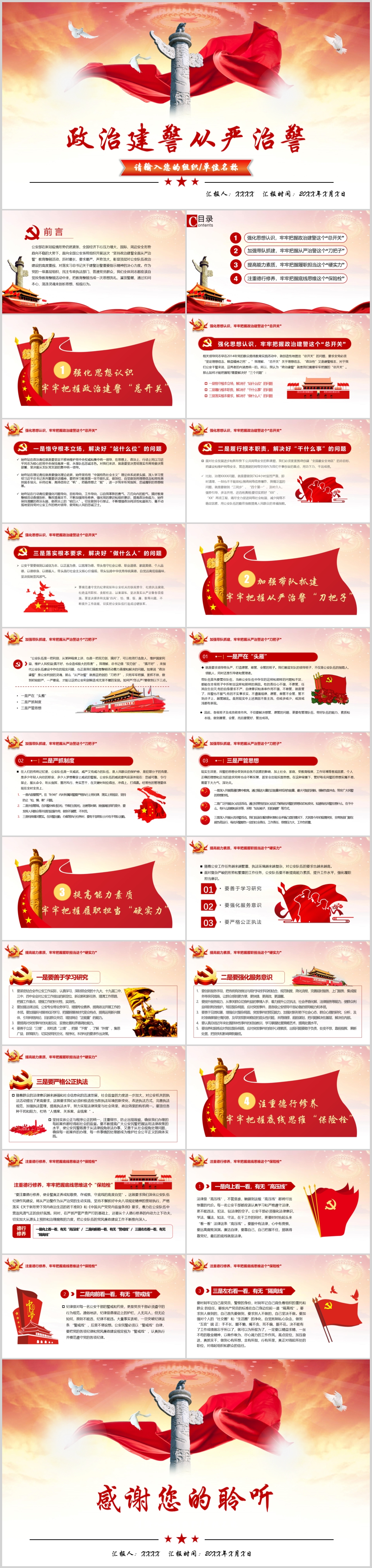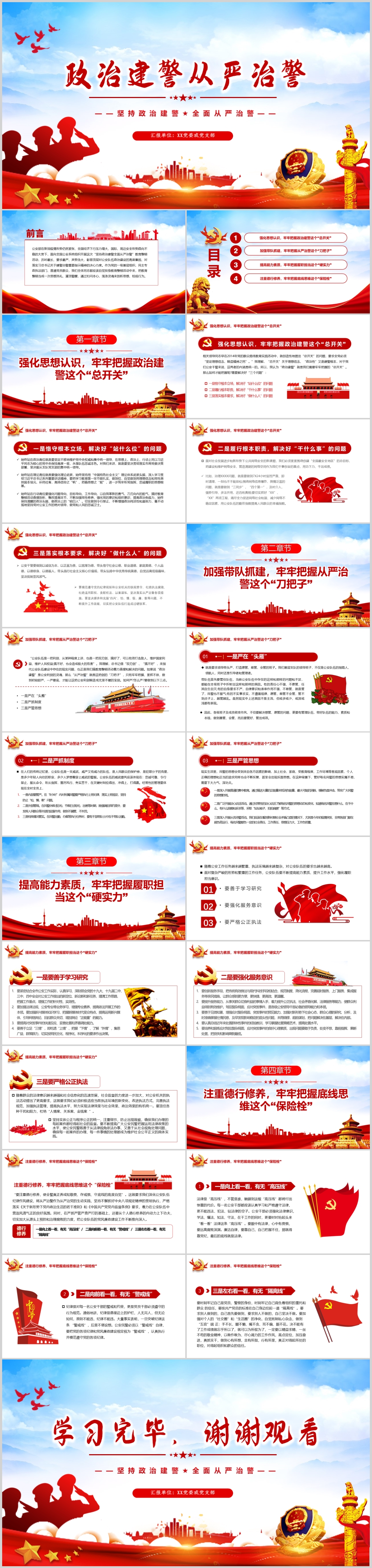 坚持政治建警全面从严治警作风建设党课PPT模板
