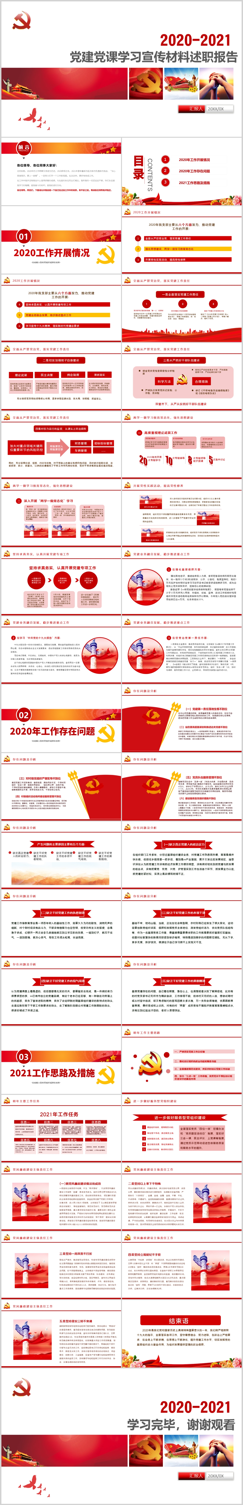 2021基层党建党支部党组织党工党委年终述职工作总结PPT模板(内含WORD演讲稿)