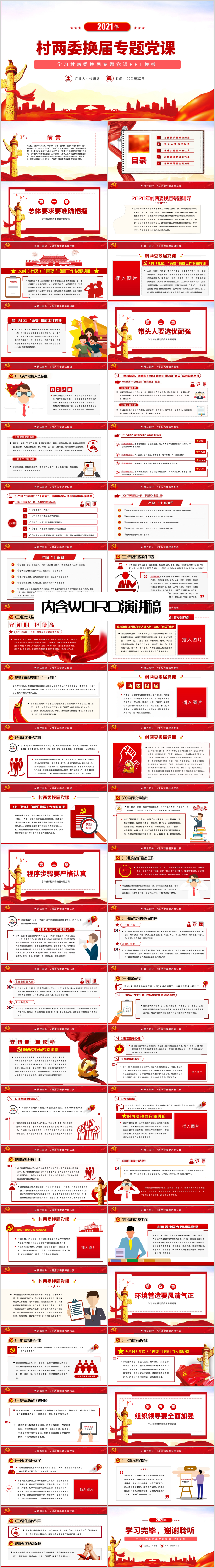 学习乡村社区两委换届选举工作专题辅导专题党课PPT模板(内含WORD演讲稿)